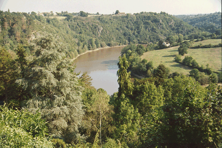 Evenals het grootste deel van Liftka, ziet ook Brÿr eruit als een "golfplaten dak", waarbij alle "ribbels" in noord-zuidelijke richting lopen. Daarom stroomt de Girdestona in de lengte door het eiland; de rivier ontspringt precies halverwege in een bosrijk berggebied en mondt in zee uit aan de zuidpunt. Vrijwel overal heeft de rivier een steil dal uitgeslepen, zowel in de bergen als in het zuidelijker gelegen heuvelland. Op de foto zien we de Girdestona even ten noorden van het paleis Aneta-seert. Bospartijen, weiden, hier en daar een huis - een en al idylle. | ||