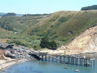 De Zlūnše-baai, even ten oosten van de stad Xolestajo. Het verschil tussen eb en vloed bedraagt hier gemiddeld enkele meters, maar bij harde zuidwestenwind of storm kan het water wel vijf meter opgestuwd worden; daarom is hier en pier gebouwd die het mogelijk maakt om vissersboten (en tegenwoordig ook plezierjachten) onafhankelijk van de waterhoogte bereikbaar te houden. | ||