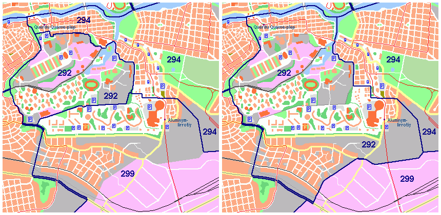 Oude wijknummers (links) en nieuwe indeling sinds mei 2009 (rechts).